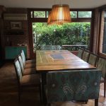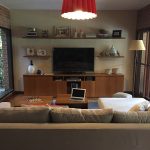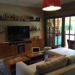 La planta baja de esta casa se encontraba bastante equipada aunque formando ambientes estancos en términos decorativos. El diseño de la planta, en cambio, unificaba el estar con un espacio intermedio para la TV a través de un patio interior y el comedor al fondo junto al jardín. El desafío consistió en reutilizar muchos de los muebles existentes y agregar muebles faltantes, tanto sueltos como empotrados. El frente del hogar se diseñó a nuevo brindando al estar el marco ideal para ubicar una obra de arte. Esa obra fue la que estableció la paleta de colores que se utilizó en todos los ambientes y disparó las terminaciones de los muebles. Asimismo se vistieron las paredes de ladrillo visto con bibliotecas empotradas y un gran mueble-bar en el sector de la TV. A través de las carpinterías que dividen los ambientes se lee un diseño integrado en cuanto a materiales y colores sin perder la esencia de cada lugar.